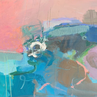 I enjoy the exploration of surface texture, dripping thin layers of acrylic paint, drawing on the paint surface, interfacing collage media with paint and keeping the brushwork energetic. When I paint I’m thinking about colors, textures, lines, shapes and how they all fit together. Color experimentation and developing figure ground relationships guide me while I investigate the bridge between the natural world and the painted surface.